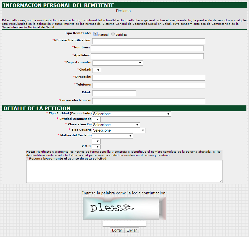 Herramienta de la Superintendencia de Salud para realizar Peticiones y Reclamos sobre el Sistema General de Seguridad Social en Salud (SGSSS)