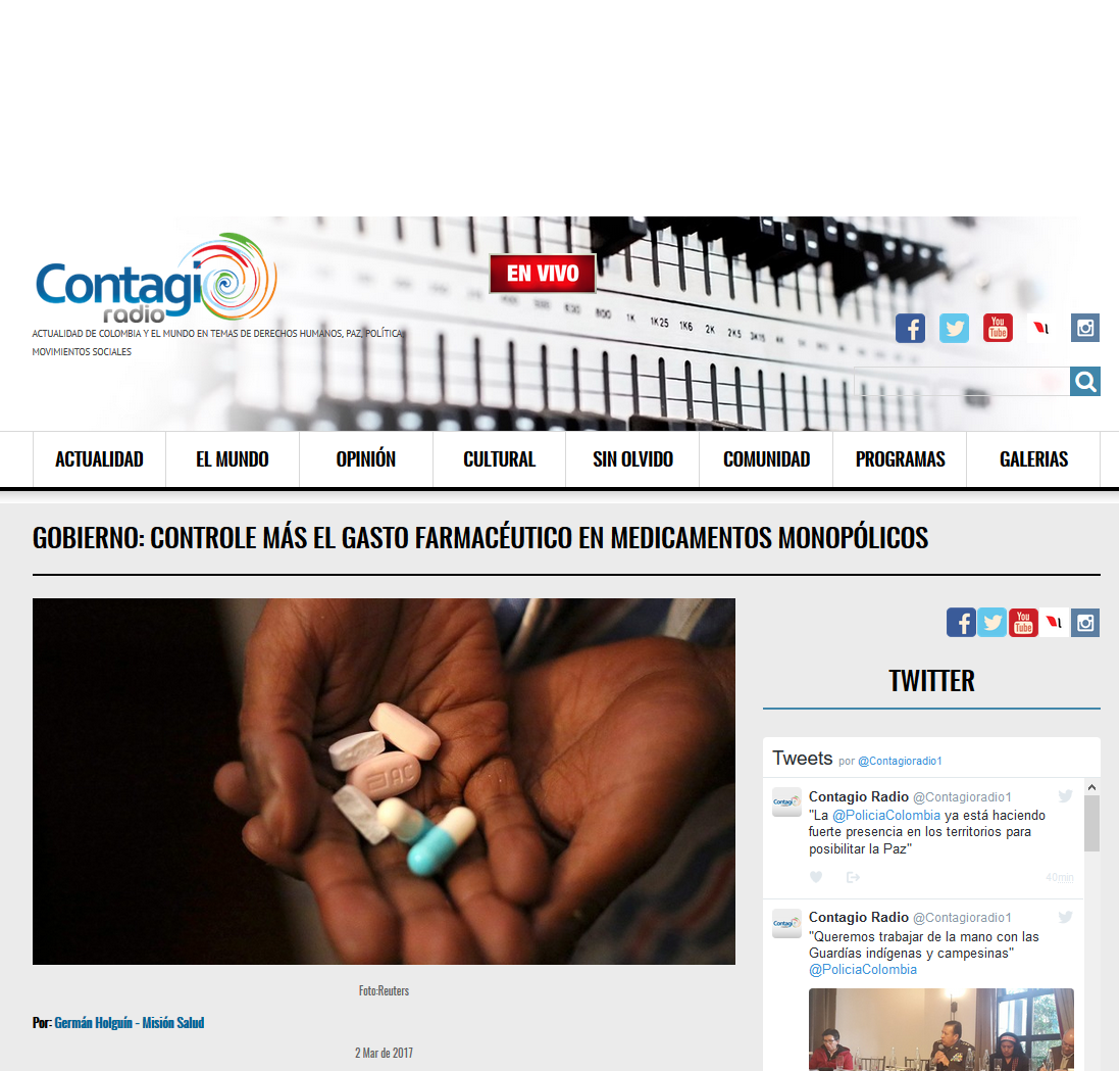 Les compartimos el nuevo espacio de difusión en el que Misión Salud analizará temas de actualidad relacionados con el derecho a la salud y el acceso a los medicamentos. Agradecemos a nuestros aliados de Contagio Radio por abrir sus puertas a la cobertura del derecho a la salud, y por permitirnos expresar nuestras opiniones sobre lo que acontece en el ejercicio de este derecho en Colombia y el mundo.
