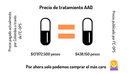 Este precio contrasta con el que viene pagando Colombia por el tratamiento a través del mismo Fondo Estratégico (por el mecanismo de “compra centralizada”), que es de $13’972.500 (US$4.050), lo que implica una diferencia de cerca del 97% y un ahorro de más de 13 millones de pesos por cada tratamiento. Esta es una noticia esperanzadora para las más de 300.000 personas con hepatitis C en Colombia. Sin embargo, nuestro país todavía no puede aprovechar esta oportunidad.  ¿Por qué?