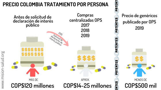 De hacerlo, el Gobierno podría comprar los tratamientos no por $13.9 millones cada uno, como ocurre hoy, sino por $438.000, lo que significa un ahorro de cerca del 97% en cada tratamiento. Como actualmente Colombia necesita cerca de 323.000 nuevos tratamientos, si se compraran los genéricos certificados por la OPS se obtendrá un ahorro de más de $4,3 billones y se salvarían miles de vidas.